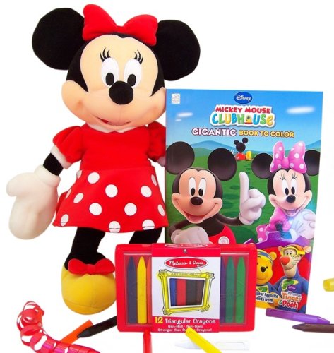 - This Item Features: Disney 16" enorMOUSE Minnie Mouse Plush Doll, Disney Mickey Mouse Clubhouse Gigantic Book to Color (112 pages), Melissa & Doug 12 Triangular Crayons.