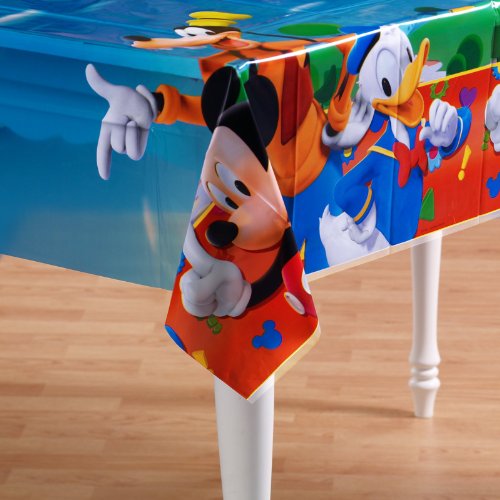 Each Plastic Mickey's Clubhouse Tablecover measures 54" x 102". Tablecover features a blue background with Mickey, Goofy and Donald along the edges.
