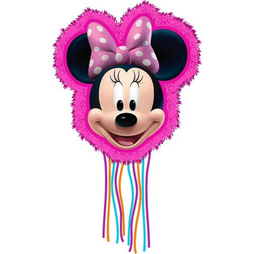 This Minnie Mouse pull string pinata measures 17 inches wide, 18 inches tall, and is 3.5 inches wide when filled. This pinata is also a pull string pinata. Directions included on tag. Perfect for your next Minnie Mouse or Mickey Mouse Clubhouse birthday party.